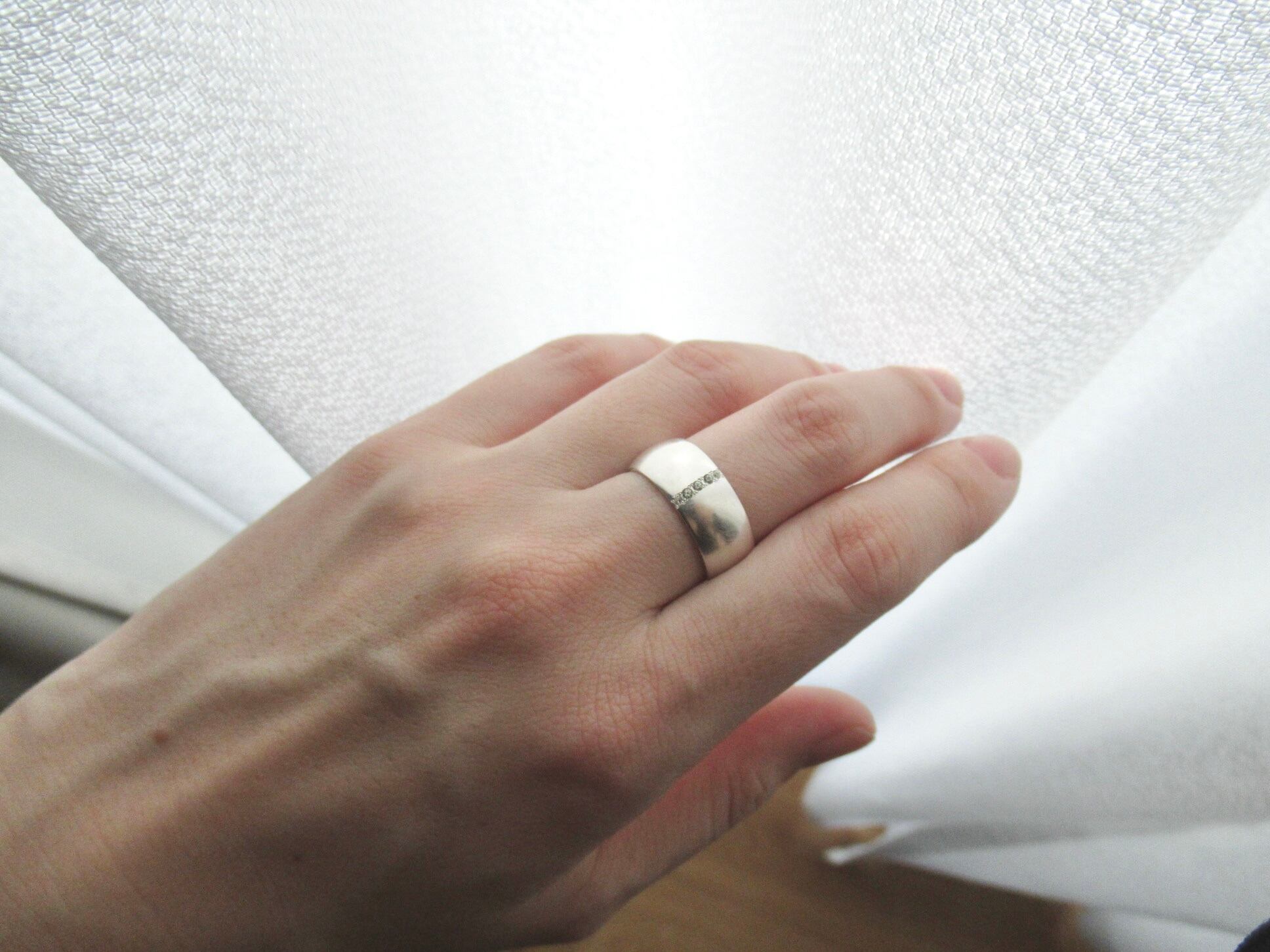 幅広リングでも肌馴染みの良い印象に仕上げています。